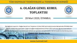 Derneğimizin seçimli 6. Olağan Genel Kurul Toplantısı 21 Mart 2020 tarihinde Şirinevler-Bahçelievler/İSTANBUL’daki dernek merkezinde yapılacaktır. Çoğunluk sağlanmadığı takdirde 28 Mart 2020 tarihinde çoğunluk aranmaksızın Dernek Yönetim Kurulu’nca belirtilecek adreste aynı gündem ile toplanacaktır.