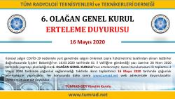 Küresel salgın COVİD-19 nedeniyle yurt genelinde salgını önlemek üzere hükümetimiz tarafından alınan tedbirler doğrultusunda İçişleri Bakanlığı’nın 16.03.2020 tarihinde 81 il Valiliğine gönderdiği yazı üzerine 28 Mart 2020 tarihinde yapmayı planladığımız 6. OLAĞAN GENEL KURULU’muz ertelenmiştir. |