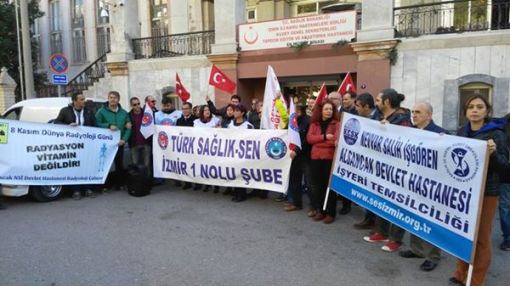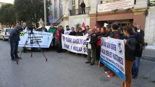 SAĞLIKÇILAR İZMİR ALSANCAK DEVLET HASTANESİNDEKİ RÖNTGENİN ÖZELLEŞTİRİLMESİNİ PROTESTO ETTİ.