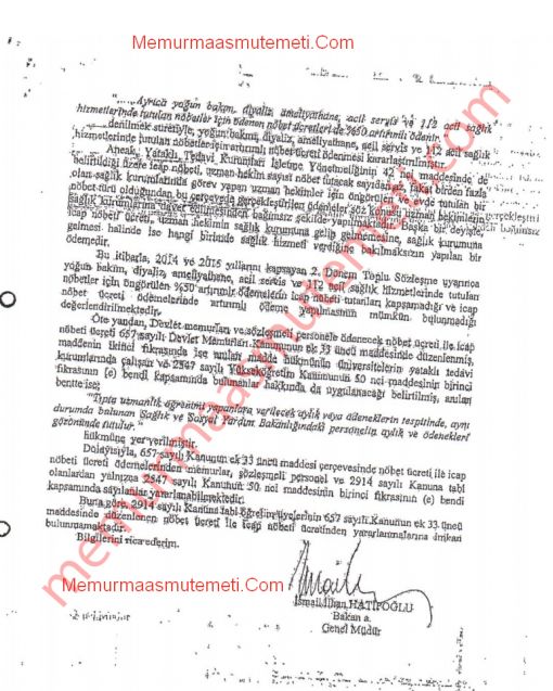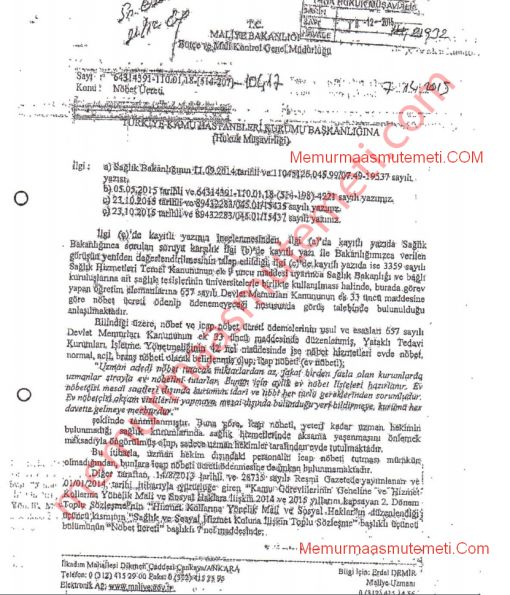 İCAP NÖBETLERİ UZMAN HEKİM DIŞINDAKİ SAĞLIK PERSONELİNE ARTIK ÖDENMEYECEK. ![]() Sağlık Bakanlığı'ndan İCAP NÖBET ÜCRETLERİ ile İlgili Yapılan Açıklama şöyledir: Kurumumuzun Maliye Bakanlığı ile yapılan yazışmalar neticesinde alinan ve ekte gönderilen Maliye Bakanlığı 07/12/2015 tarihli ve 10417 sayılı yazısında belirtilen icap nöbeti '' Uzman hekimin dışındaki personelin icap nöbeti tutması mümkün olmadığından bunlara icap nöbet ücreti ödenmesinede imkan bulunmamaktadır.'' denildi. Yani görüş yazısının özeti icap nöbetleri sadece UZMAN TABİP' lere ödenecektir. Onun dışındaki pratisyen hekim ve diğer sağlık personeline icap nöbet ücreti yapılmayacaktır. Kaynak: memurmaaşmutemeti.com İlgili görüş yazısı ![]() ![]() ![]() ![]() |