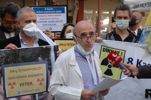 TEŞEKKÜRLER İZMİR. 8 KASIM DÜNYA RADYOLOJİ GÜNÜ KUTLU OLSUN. ![]() 8 KASIM DÜNYA RADYOLOJİ GÜNÜ KUTLU OLSUN. TÜMRAD-DER İzmir Temsiliği'nin çağrısı ile İzmir'deki Radyoloji Teknisyenleri ve Teknikerleri Alsancak Devlet Hastanesi'nde bir araya gelerek BASIN AÇIKLAMASI yaptı. Basın Açıklamasına İzmir Tabip Odası, SES, Genel Sağlık İş, Birlik Sağlıksen, SAHİM SEN, ve birçok sendika destek verdi. TÜMRAD-DER: Bir alkıştan daha fazlasını hak ettik.8 Kasım Dünya Radyoloji Günü’nde taleplerini dile getiren TÜMRAD-DER İzmir Şubesi, Alsancak Devlet Hastanesi önünde basın açıklaması yaptı. Yapılan açıklamada, diğer sağlık emekçileri gibi alkıştan fazlasını hak ettikleri vurgulandı.Haklarının ellerinden alınmak istendiği bir süreci yaşadıklarını dile getiren Özarslan, “1,5 Yıllık Pandemi ile canla başla ön saflarda mücadelede yer alan radyoloji/radyasyon çalışanları olarak diğer sağlık emekçileri gibi ‘Bir alkıştan daha fazlasını hak ettik.’ Ekonomik ve sosyal haklarımızda, çalışma koşullarımızda iyileştirilmeler beklerken bütün bu özverili çalışmalar yok sayıldığı, kanunlarla düzenlenmiş haklarımızın elimizden alınmak istendiği bir süreci yaşıyoruz. Radyoloji teknisyenlerini personel eksikliğinden dolayı Acil Servislerde fazla nöbet tutmak zorunda kaldılar. Sağlık Bakanlığı, Danıştay’ın nihai kararını beklemeden 5 yıl boyunca tutulan bu nöbetlerin ücretlerini faizi ile birlikte geri istiyor. Arkadaşlarımıza 5 bin ile 40 bin TL arasında borçlar çıkarıldı. Bir ay içerinde ödeme yapılmadığı takdirde icra ve hacizlerle karşı karşıya kalacaklar” diye konuştu. ‘HAKLAR KISITLANIYOR’ 25 Haziran'da Resmi Gazete'de yayımlanan Cumhurbaşkanlığı Kararnamesi ile Radyoloji çalışanlarının haklarını koruyan, radyoloji departmanlarının ve röntgen cihazlarının sahip olması gereken standartları ve özellikleri düzenleyen Radyoloji Nizamnamesi’nin yürürlükten kaldırdığını söyleyen Özarslan, “60 bin civarında sağlık emekçisinin özlük haklarını düzenleyen bir mevzuatın yürürlükten kaldırılarak yerine henüz bir mevzuat konulmamış olması kaotik bir durum oluşmasına sebep olmuştur. Radyoloji çalışanları ile birlikte, radyasyon ile çalışan yaklaşık 60 bin sağlık çalışanının kanunla düzenlenmiş hakları olan ŞUA izinleri, yıpranma yani fiili hizmet gibi hakları kısıtlanıyor veya kaldırılıyor” ifadelerini kullandı. Özarslan talepleri ise şu şekilde açıkladı: “Sağlık Bakanlığı ivedilikle yürürlükten kaldırılan bu mevzuatların yerine tüm tarafların (radyologlar, radyoloji teknisyenleri, fizikçiler, nükleer tip uzmanları, sendikaları ve meslek örgütlerinin görüşlerini alarak ülkemizin gerçeklerine uygun yeni bir düzenleme yapmasını, radyasyon ile çalışan sağlık personelinin şua izinleri; fiili hizmet ve çalışma süresi gibi kanunlarla düzenlenmiş haklarının aynen korunmasını, tüm taraflarıyla birlikte radyoloji teknisyenlerinin görev yetki ve sorumluluklarını belirleyen düzenlemenin ivedilikle hazırlanmasını ve Radyoloji, nükleer tıp ve radyoterapi alanında personel eksikliğini gidererek iş yükünü azaltacak şekilde istihdam yapılmasını istiyoruz.” TÜMRAD-DER İzmir Temsilcisi Ertuğrul Özarslan yaptığı basın açıklamasında. - TÜMRAD-DER Genel Başkanı Heybet Aslanoğlu - İzmir Tabip Odası Başkanı Lütfi Çamlı - Birlik Sağlık Sen Genel Başkanı Ahmet Doğruyol - SES İzmir Şube Eş Başkanı Nursel Yücesoy - Genel Sağlık İş Sendikası İzmir Şube Sekreteri Selim İyidoğan - SAHİM Sen Genel Başkanı Özlem Akarken kısa konuşma yaptı. Basın Açıklamamız birçok basın tarafından haber yapılmıştır. |